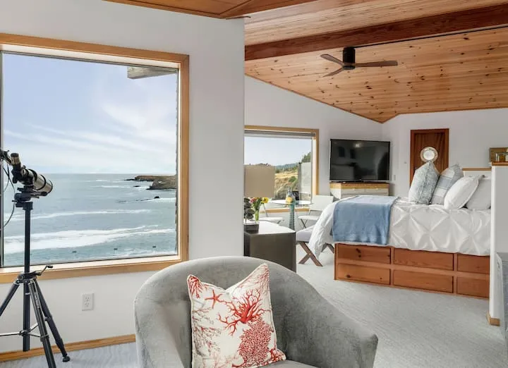 Welcome to Dew Point Retreat, a Vinifera Homes property. A peaceful coastal escape perched on a bluff in Gualala, just 5 mins from town but a world away from the everyday. Wake up to the sound of crashing waves & panoramic views of the sea. This tranquil retreat offers front-row seats to unforgettable sunsets, migrating whales, & starry skies, all from the comfort of the home…