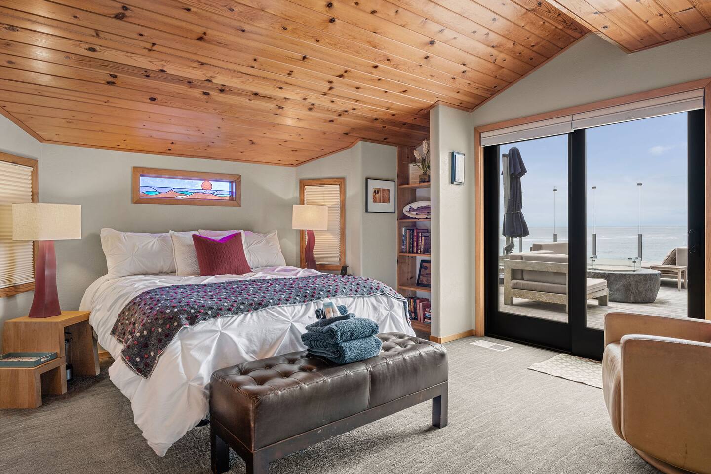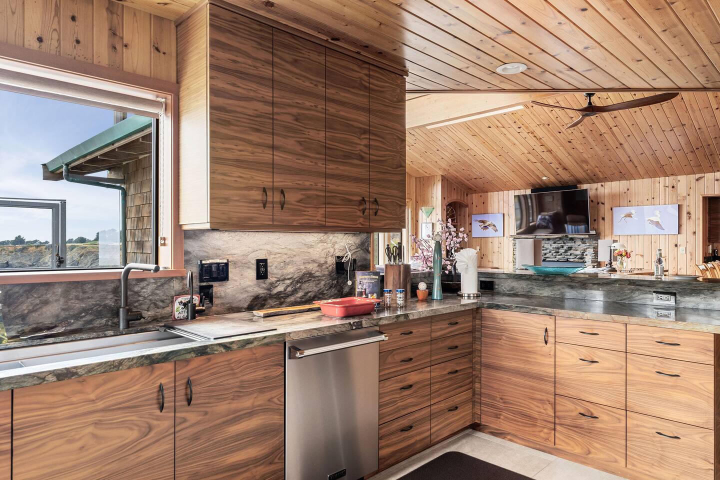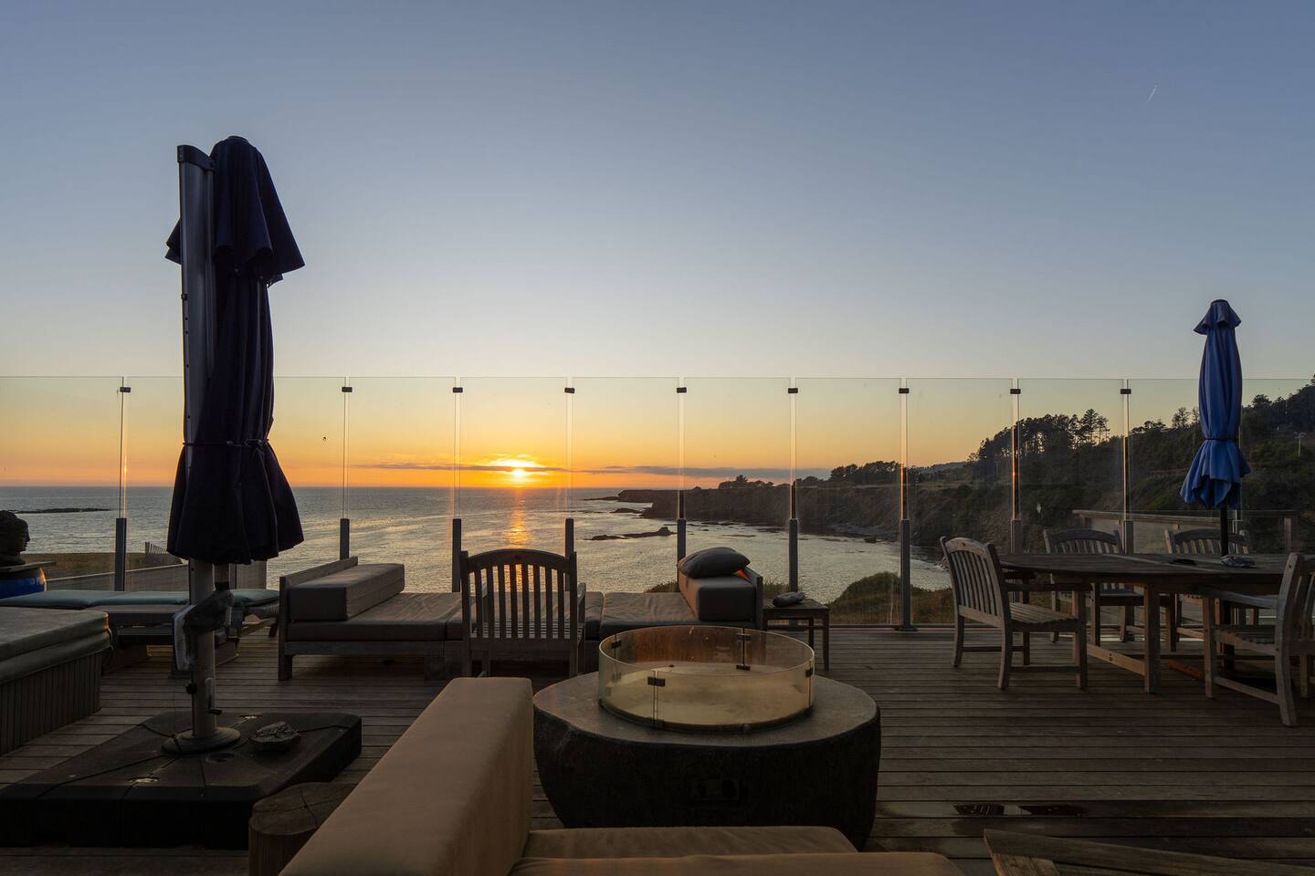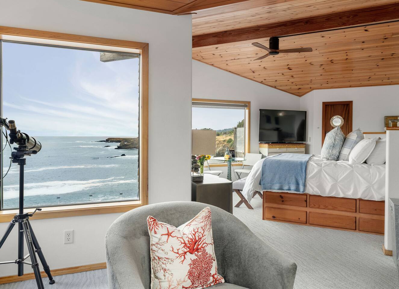 Step inside to an open-concept living space centered around floor-to-ceiling windows that frame breathtaking views of the Pacific. Cozy up by the fireplace, get lost in a good book, or simply sip coffee or wine as the ocean puts on a show. Dew Point Retreat makes you fall in love with the quiet rhythm of coastal life.