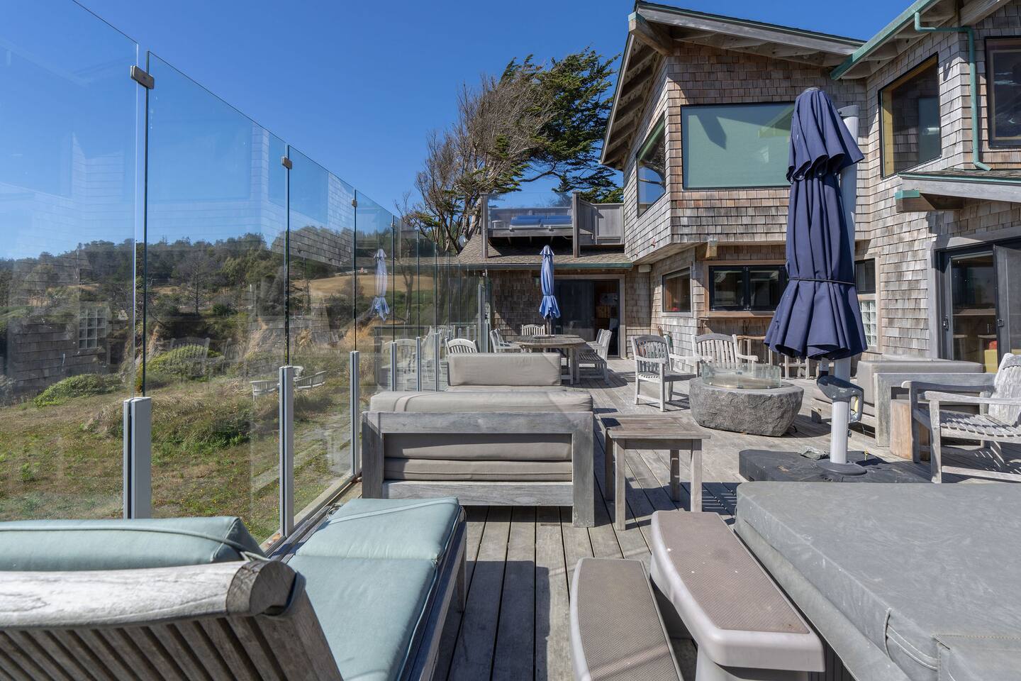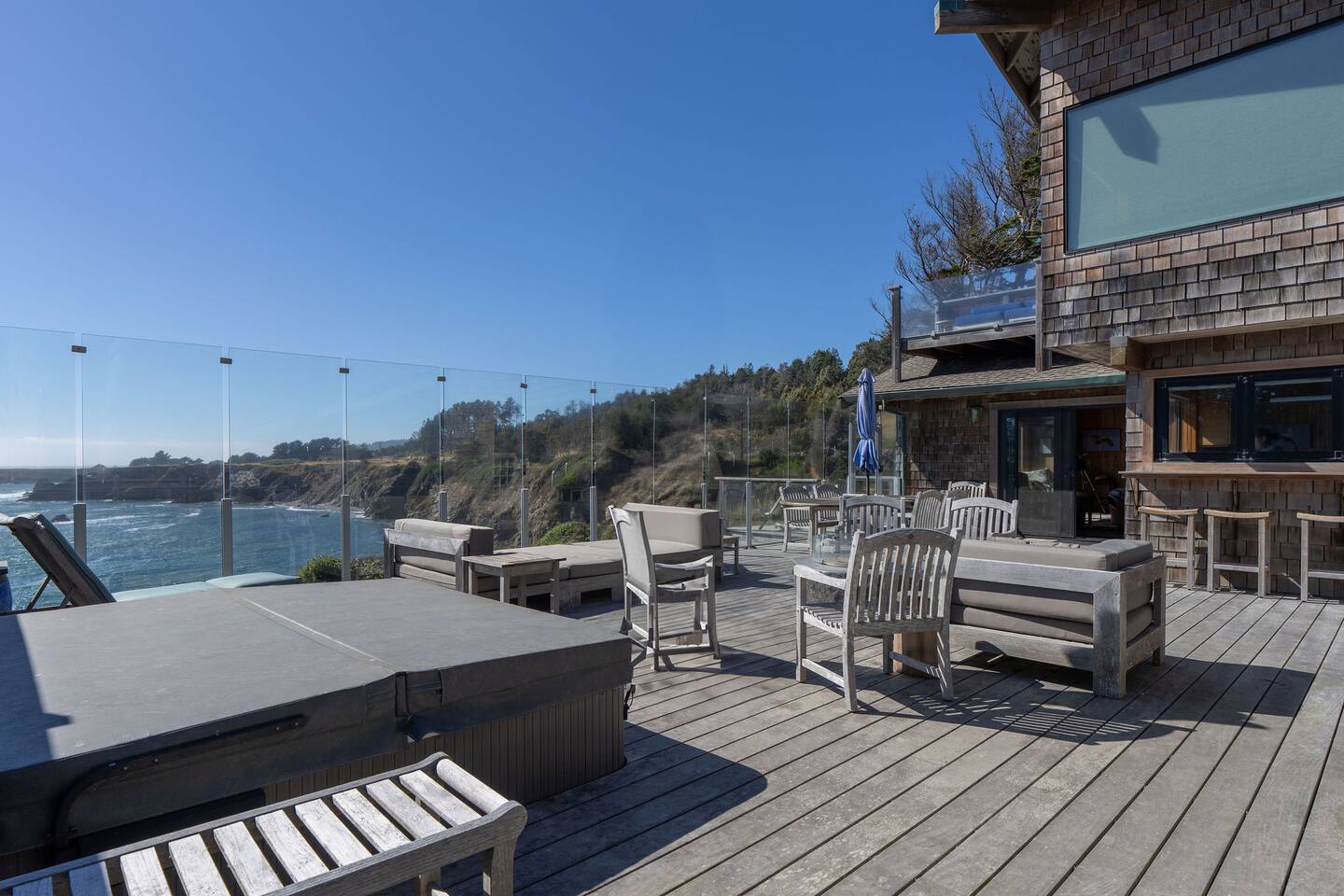 The spacious deck offers sweeping views of the coastline that seem to stretch forever. Watch for passing whales, unwind in the hot tub beneath a canopy of stars, or drift off for an afternoon nap to the rhythm of waves racing to the shore. The fresh ocean air, quiet seclusion, and endless views create the perfect setting to reset.