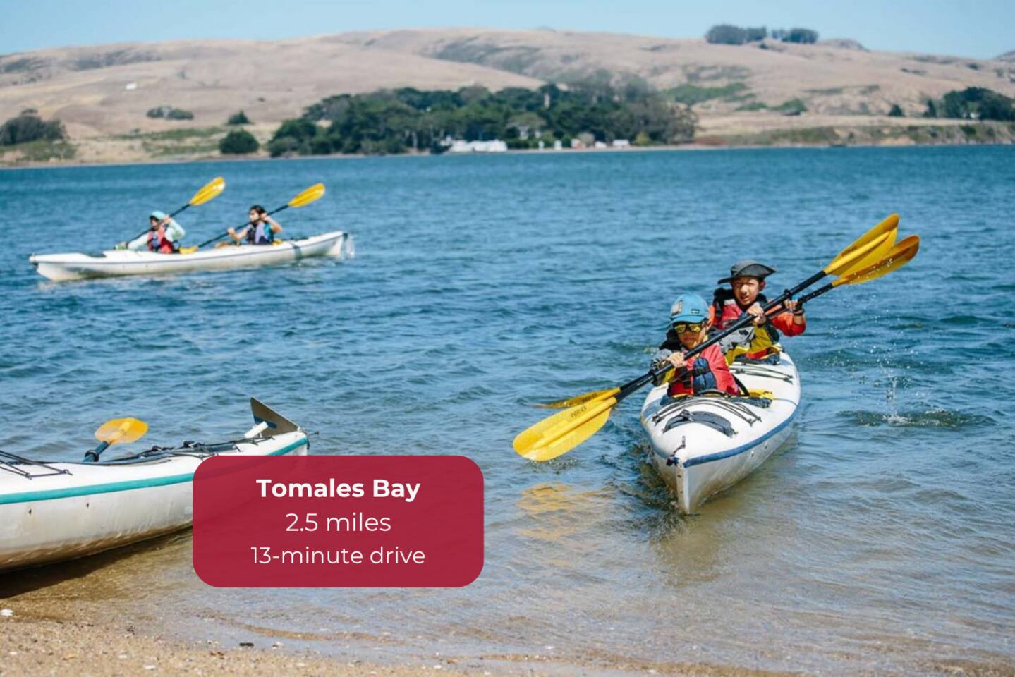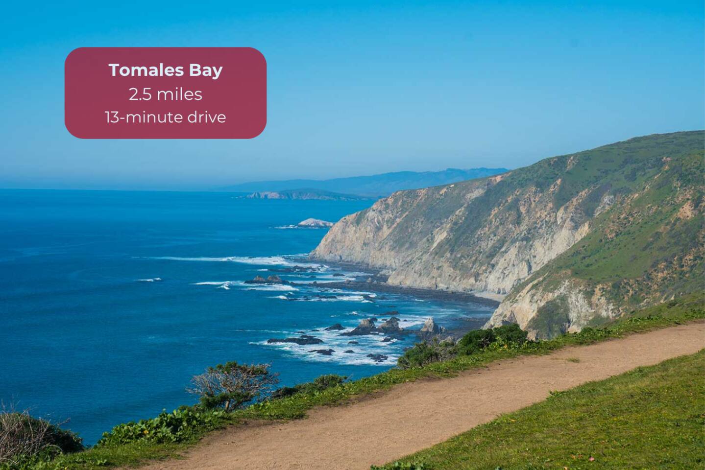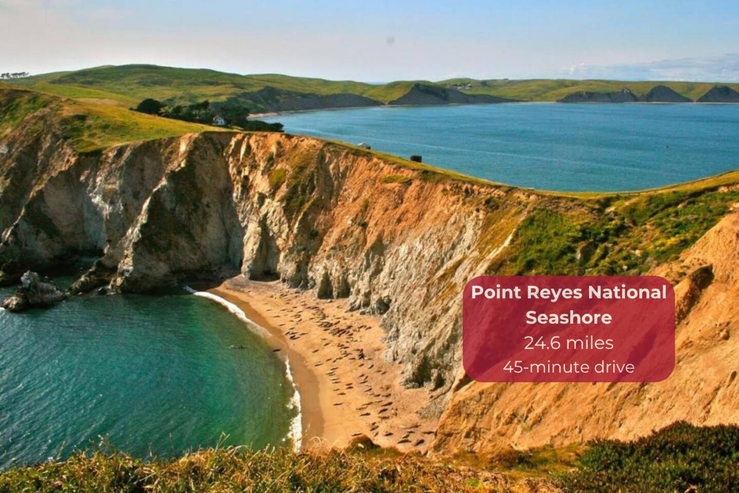 Just over an hour north of San Francisco Bay Area attractions and only a few minutes from the beach, Farol offers easy access to a one-mile stretch of golden sand where you can surf, stroll, or wander among tide pools at low tide. Spend your mornings hiking along the bluffs of Point Reyes National Seashore (about 25 minutes away), your afternoons kayaking or power boating in Tomales Bay (a 15-minute drive), and your evenings watching whales crest the horizon from the deck.
